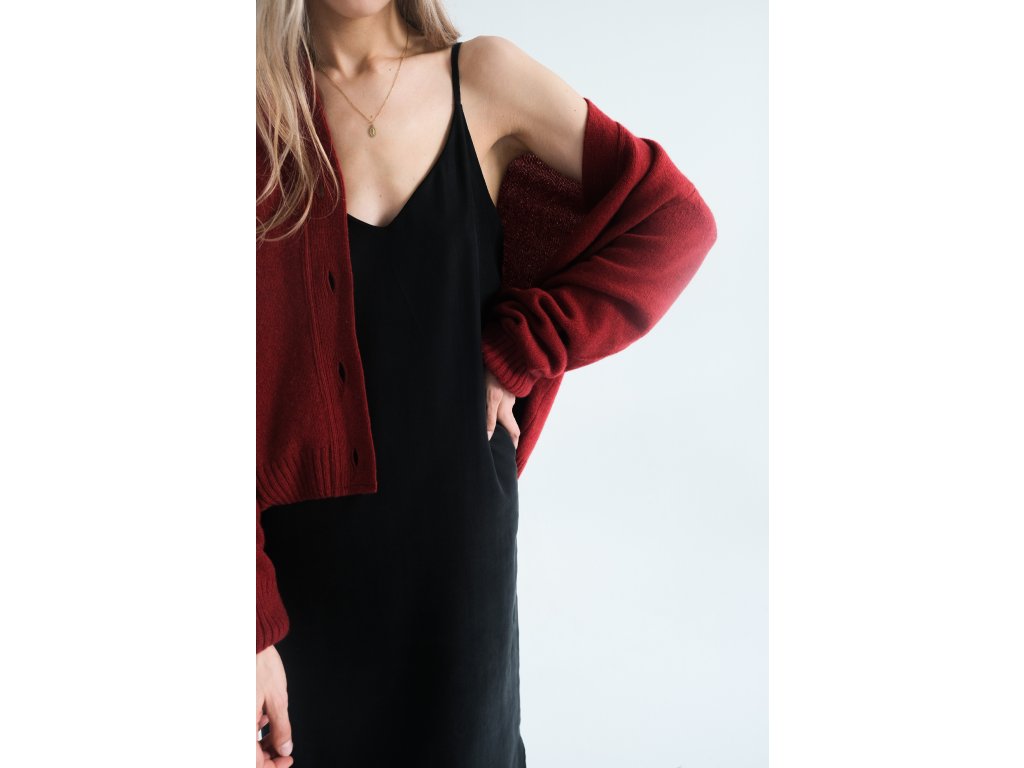 Šaty mají jednoduchý střih, který jednoduše padne. Díky vzdušnému splývavému materiálu se hezky přizpůsobí postavě a hezky se nosí po celý den. V kombinaci s hřejivým svetrem je to opravdu luxusní zážitek.