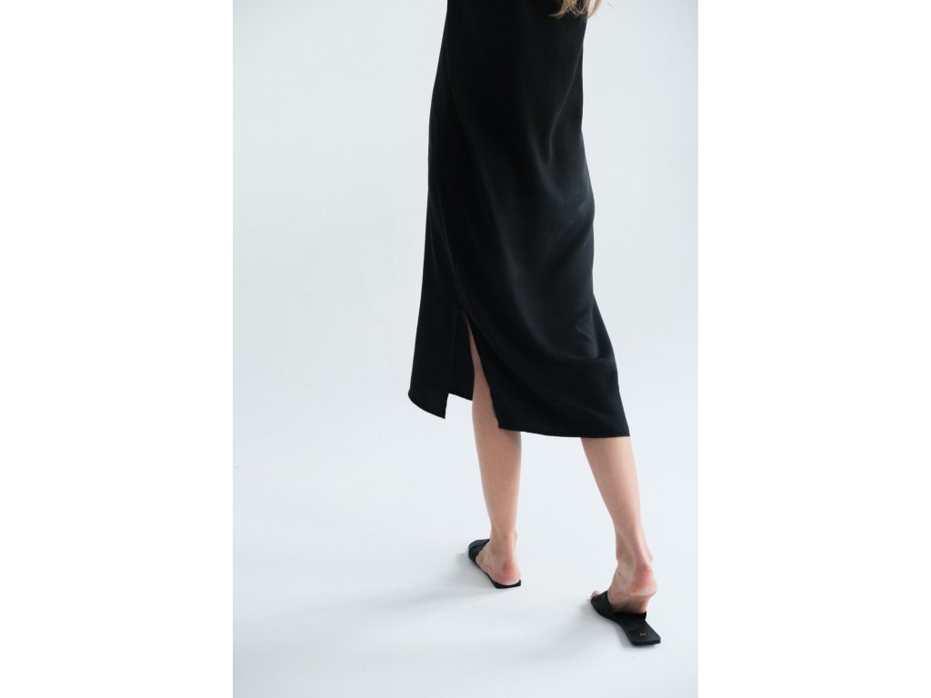 Oblíbený střih šatů na ramínka v prodloužené verzi a s rozparkem! Minimalistické, nadčasové šaty z udržitelného a opravdu příjemného materiálu lyocell.