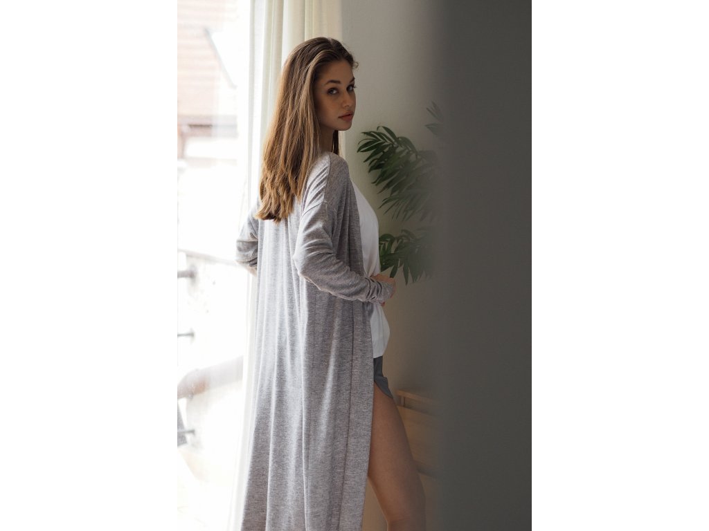 Lehký dlouhý kardigan šedý