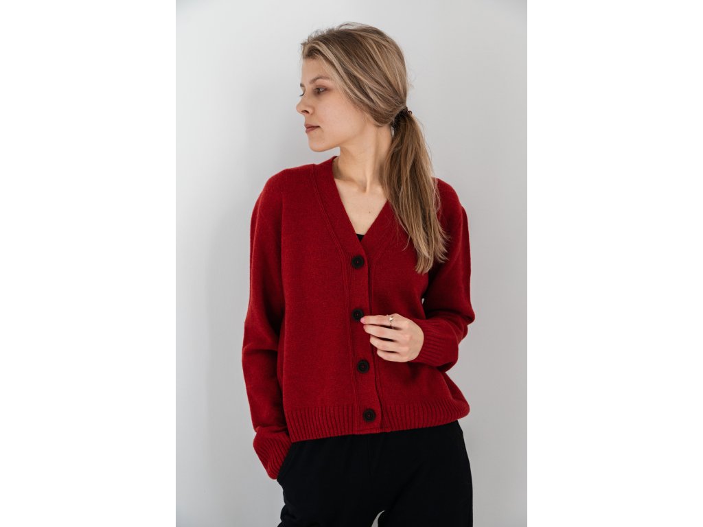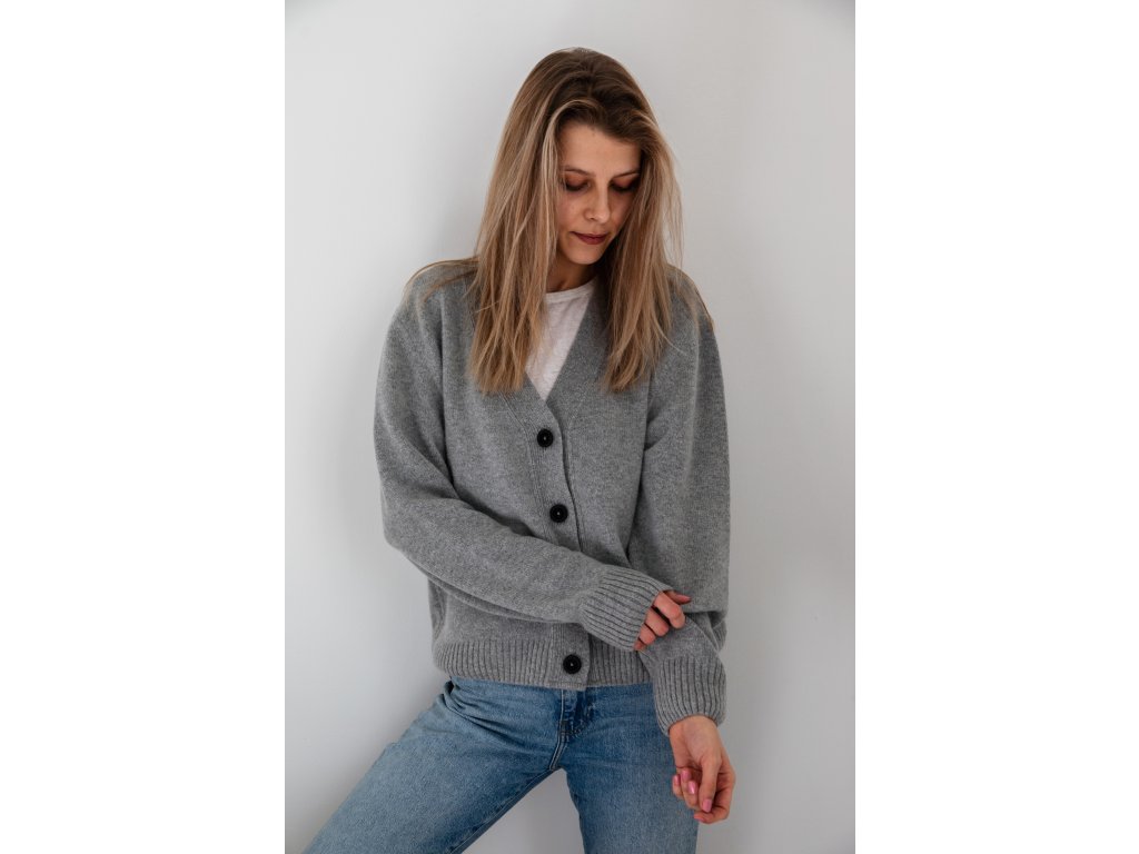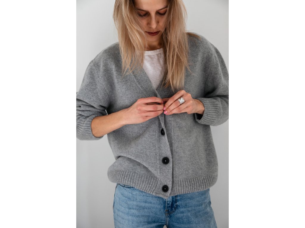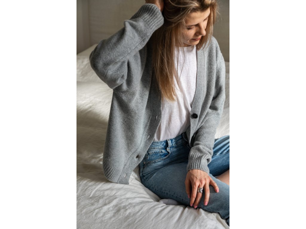Teplý a měkoučký cardigan z merino vlny a kašmíru je tak příjemný, že se do něj budete chtít denně zamuchlat. Je upletený v České republice a zdobí ho krásné dřevěné knoflíčky.