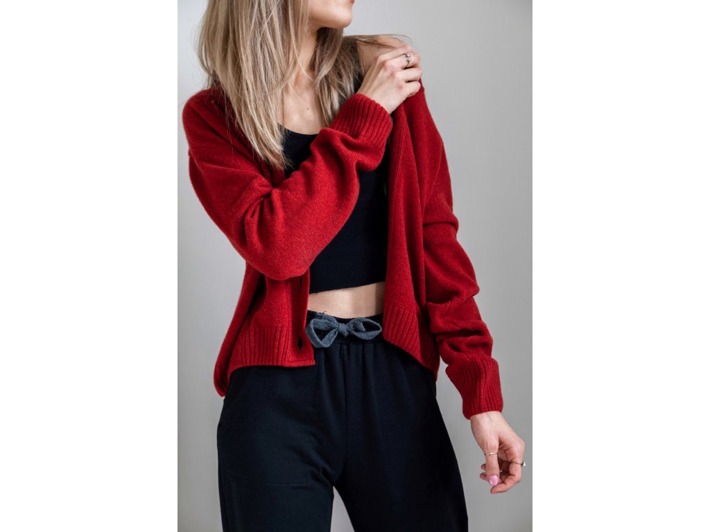 Kardigan je upletený v České republice a zdobí ho krásné dřevěné knoflíčky vyrobené také u nás. K úplné dokonalosti chybí už jenom knížka a horké kakao.