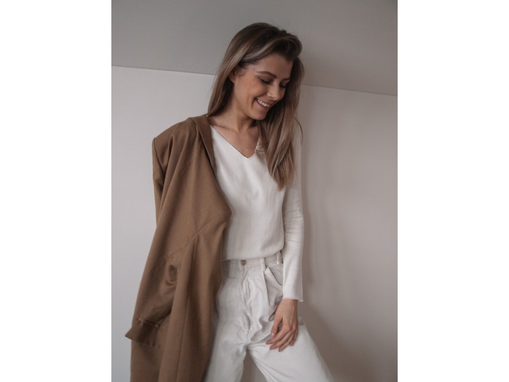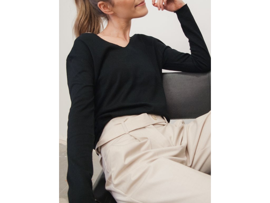 Svetřík, který vám vyrazí dech! Ale v dobrém slova smyslu. Jednoduchý, perfektně padnoucí střih, na který po vyzkoušení nedáte dopustit. Svetr nemá klasicky založené kraje, je olemovaný a působí tak opravdu elegantně, takže k němu ideálně vezměte kabát a kozačky nebo pak na jaře hezky k teniskám.